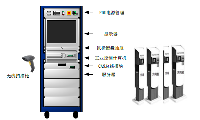 (2)設(shè)備采用機(jī)柜式設(shè)計(jì)方式,機(jī)柜內(nèi)部集成工控機(jī)及外設(shè)、顯示器、掃描槍、報(bào)警裝置、電源保護(hù)裝置高壓/絕緣檢測(cè)儀器及附屬配件。